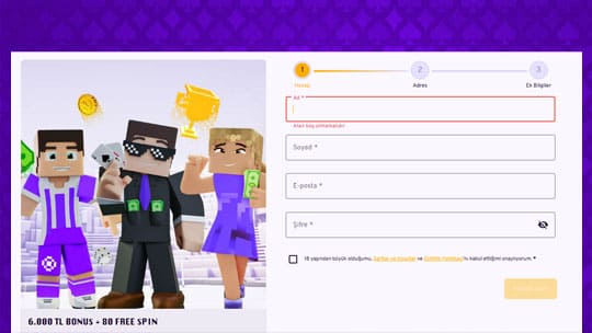 Betchip kayıt süreci sadeliğiyle dikkat çekerek en fazla 2-3 dakika sürüyor. Ana sayfada sağ üst köşedeki sarı renkteki “Kayıt Ol” butonuna tıklayın. Karşınıza çıkan formdaki bilgilerinizin güncel olmasına dikkat edin. Ardından, site kurallarını ve 18 yaş onayını işaretleyin, “Kayıt Ol” butonuna basın.