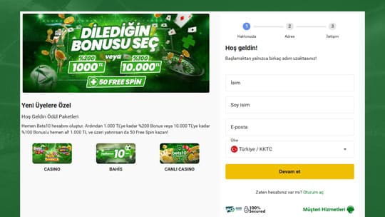 Bets10 Üyelik ve Kayıt Prosedürü